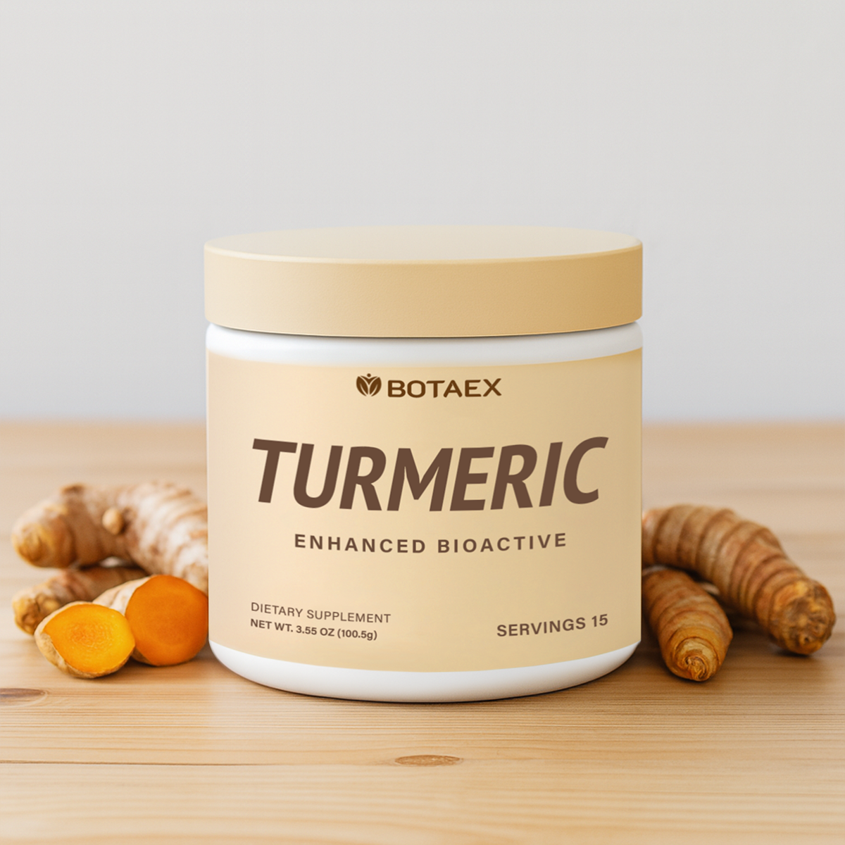 Botaex uses a fermented turmeric root that contains a maximum level of highly bioavailable bioactive substances while respecting the natural matrix of the turmeric root. Turmeric contains a natural compound called curcumin. This organic, fermented turmeric enhances curcumin bioavailability which makes it up to 17x more absorbable than non-fermented curcumin. This ingredient has been found to help reduce inflammation and increase antioxidants in the body strengthening the immune system. **